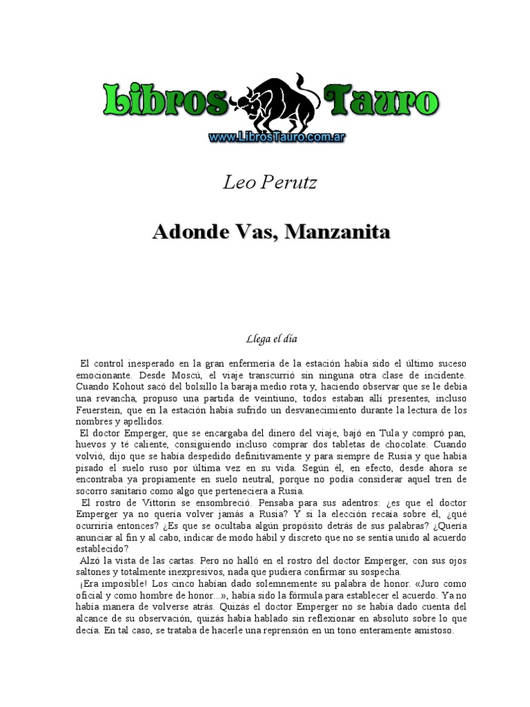 ¿Adónde Vas, Manzanita? | Leo Perutz | download on Z-Library | Download books for free. Find books