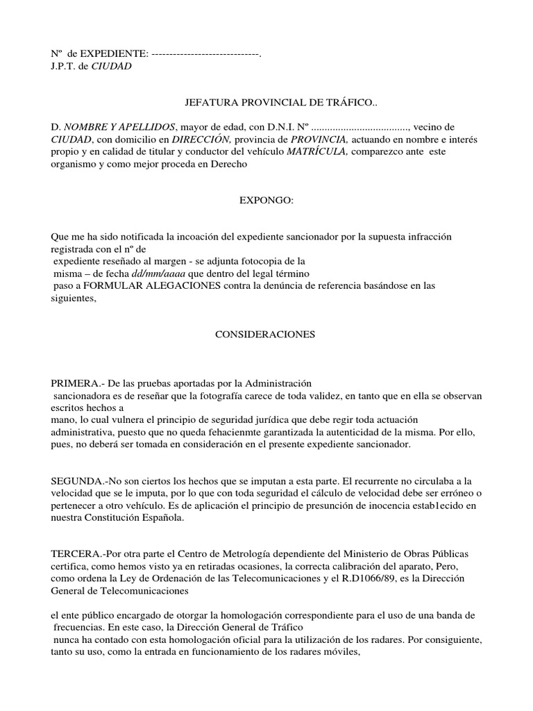 Presentación de alegación por exceso de velocidad. Dirección General de Tráfico. Ene 26, 08:29 am. Si recibes una multa de Tráfico, siempre tendrás el derecho de presentar alegaciones si no estás de acuerdo con los hechos que te hemos notificado. Se podrán aportar los documentos que estimes pueden aportar datos o información que no se.