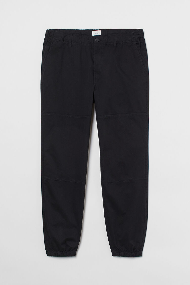 H&M - Menswear - Regular Fit Cargo trousersRegular-fit cargo trousers in cotton twill with sewn-in pleats at the knees. Covered elastication at the back of the waist, zip fly and a press-stud. Welt side pockets with a press-stud, bellows leg pockets with press-studs and welt back pockets.Article number: 1191680002Length: LongClothing Style: CargoWaist Rise: Regular waistPattern: Solid.