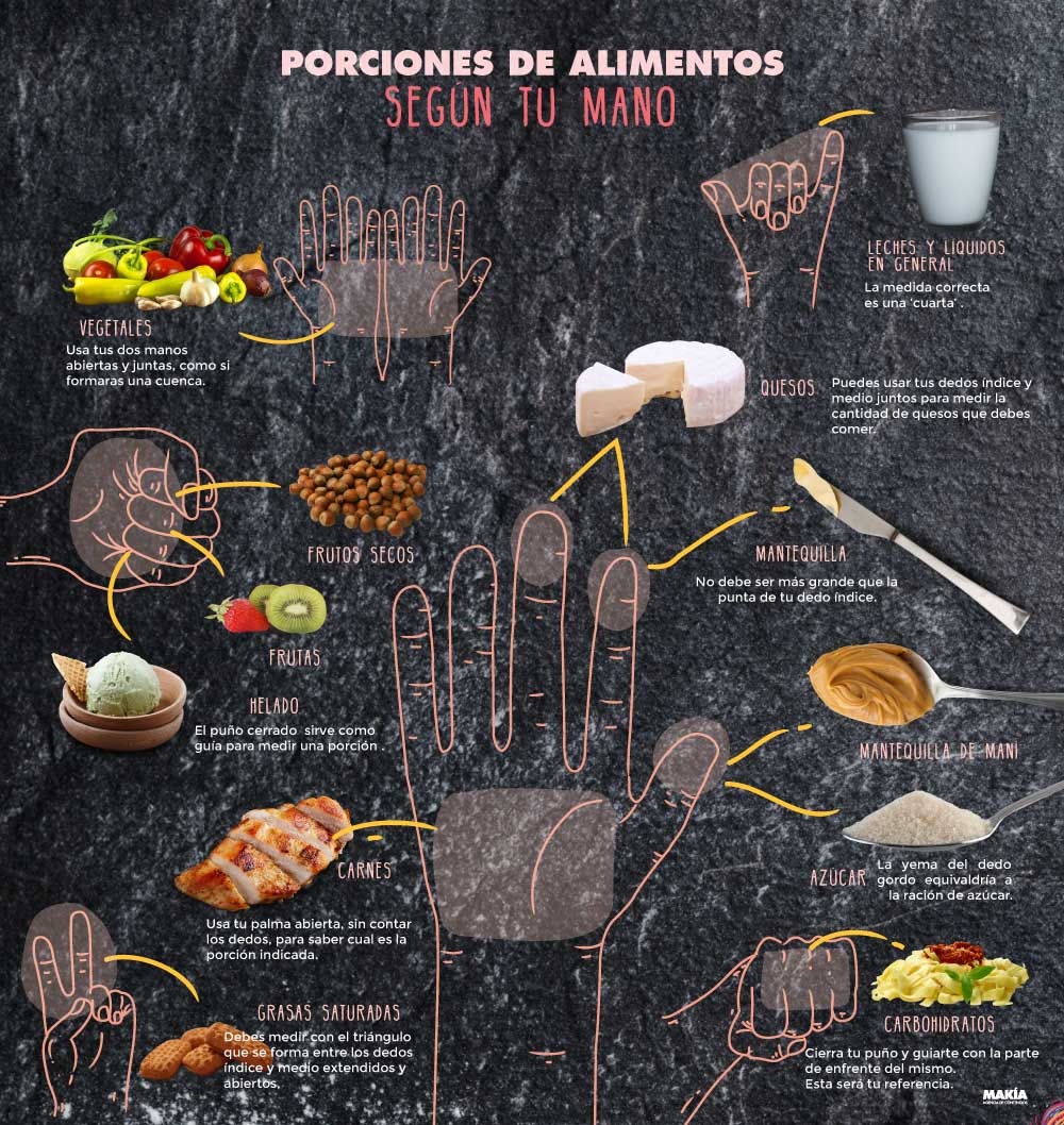 Aprendamos a comer Cómo medir las porciones de alimentos con las manos