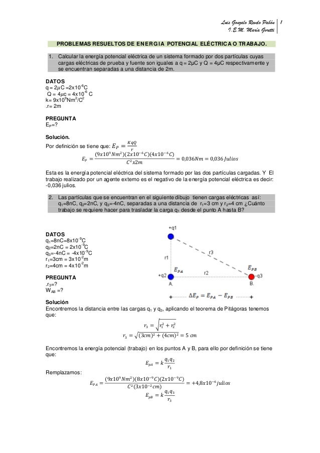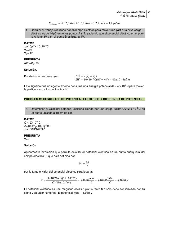 Potencial Electrico Y Diferencia De Potencial Ejercicios Resueltos