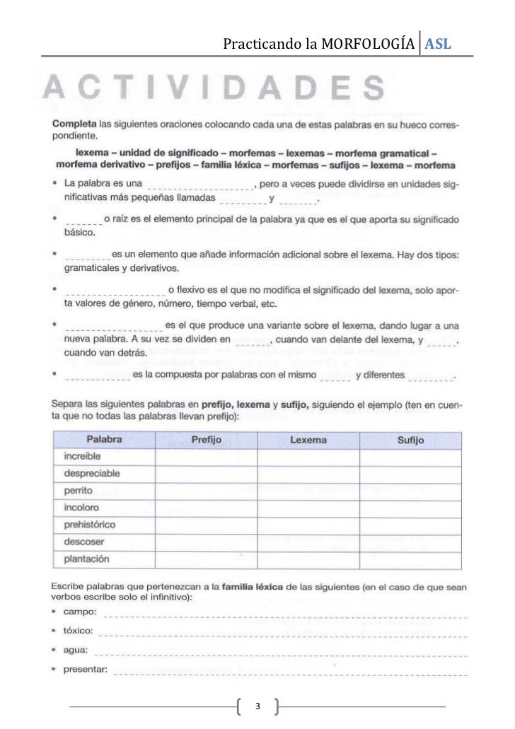 Practicando actividades morfología