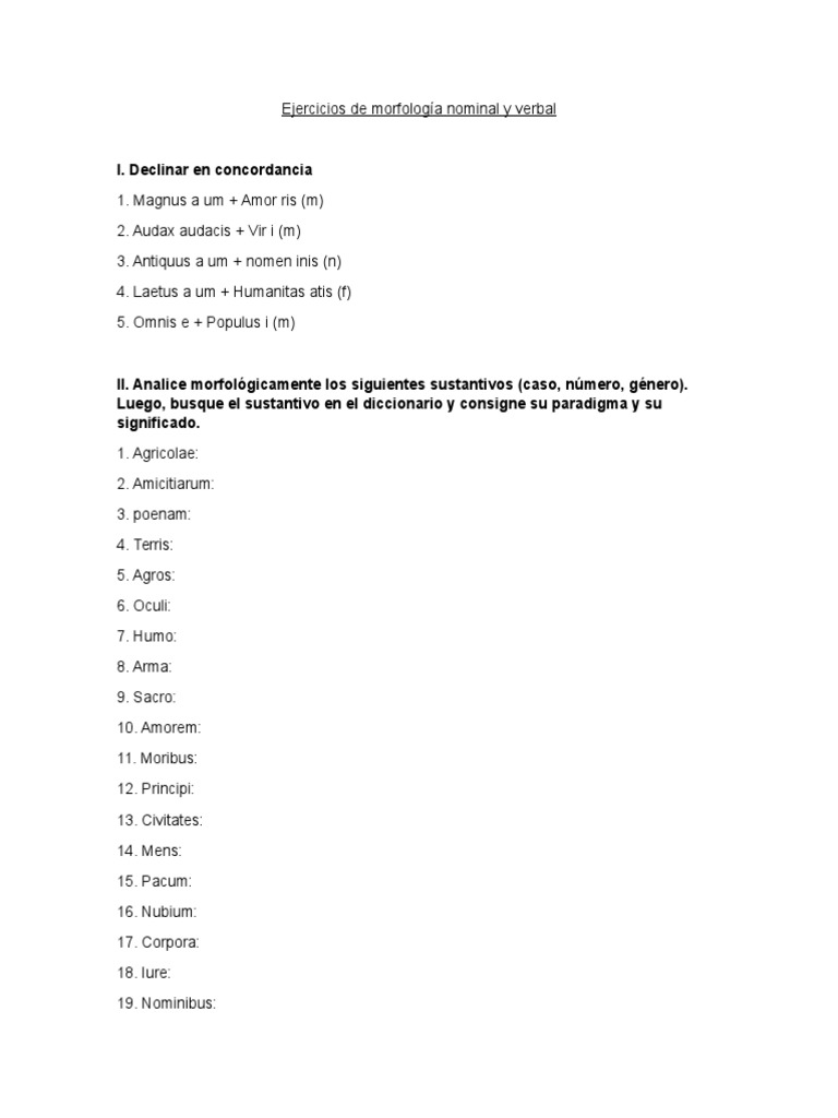 Ejercicios de Morfología Nominal y Verbal Latin PDF