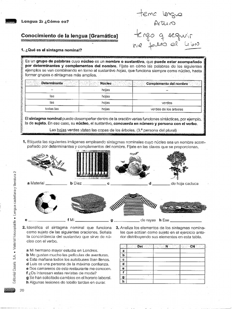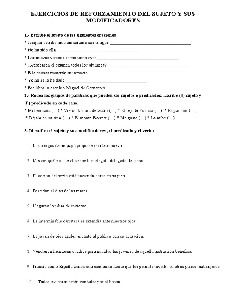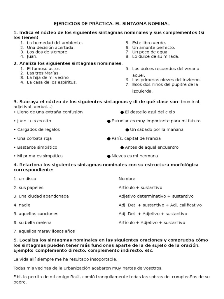 SINTAGMA NOMINAL EJERCICIOS PDF Asunto (gramática)