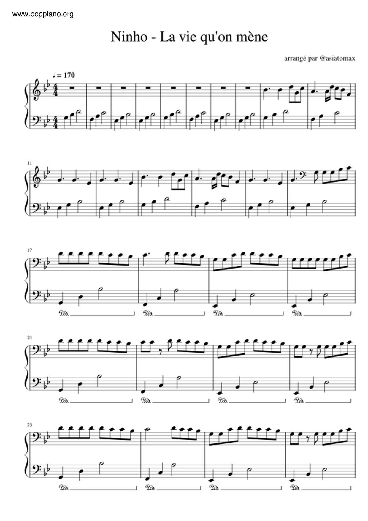 NinhoLa Vie Qu'on Mène 琴谱/五线谱pdf香港流行钢琴协会琴谱下载 ★