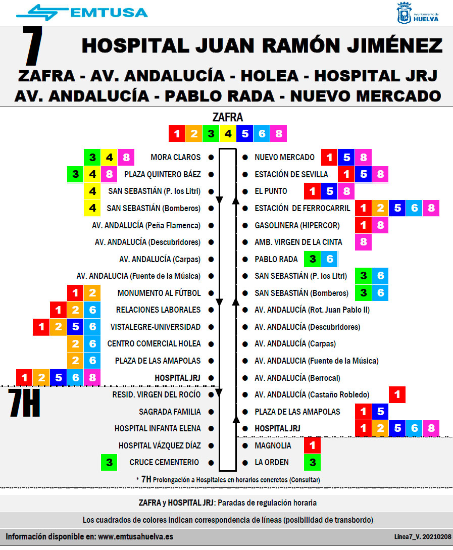 Horarios de los autobuses de EMTUSA . Horarios vigentes a partir del 01/01/2024. Horario Línea 1.. Horario Línea 7H. Hospitales. Horario Línea 8. Taxi-Bus a La Ribera . Horarios de las líneas auxiliares vigentes a partir del 19/09/2022. Horario de la Línea Diego de Guzmán y Quesada 1.. HUELVA (España) emtusa@emtusahuelva.es. ISO.
