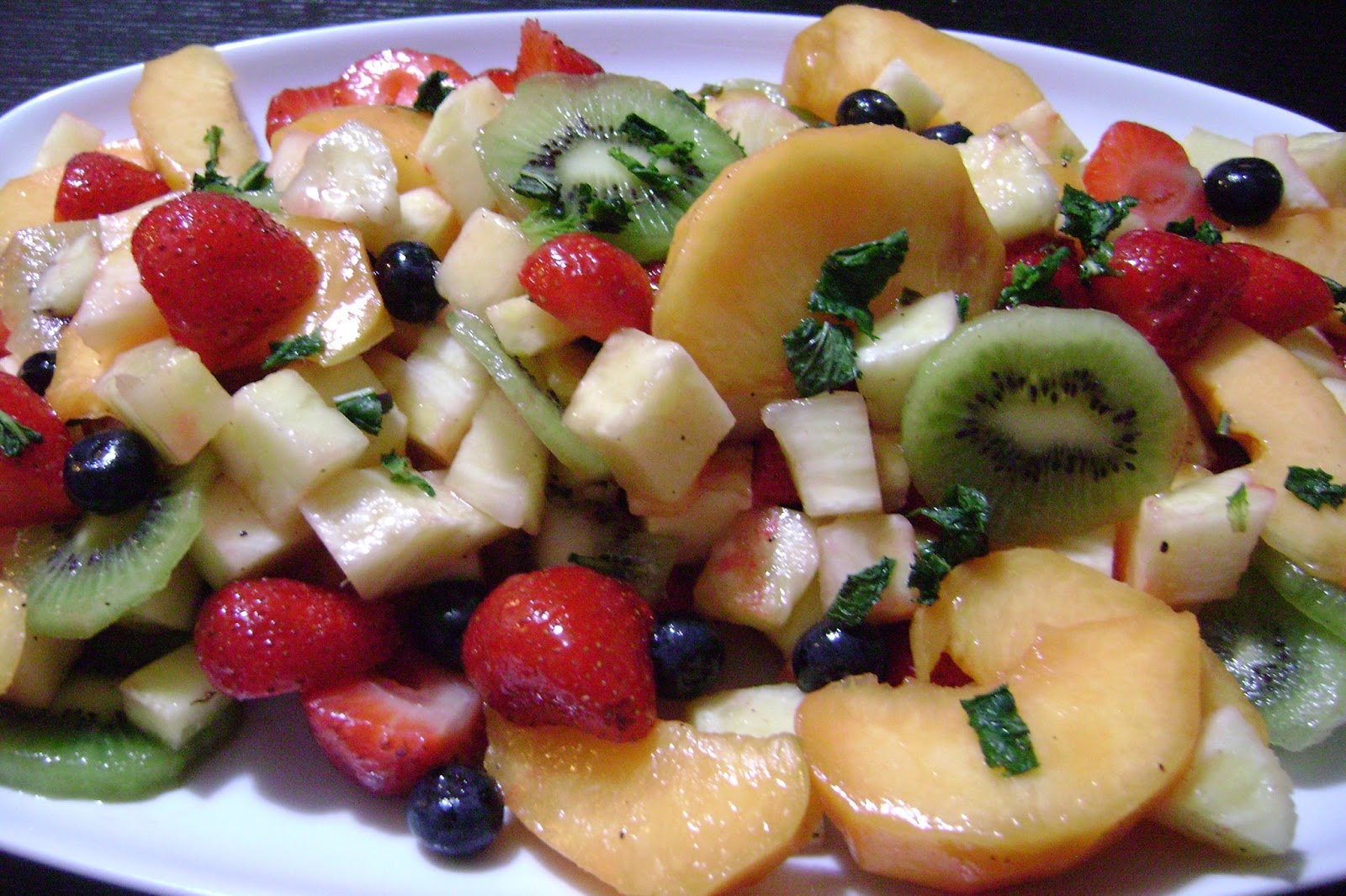 Vino y Miel Ensalada de frutas de verano con menta y aceite de oliva