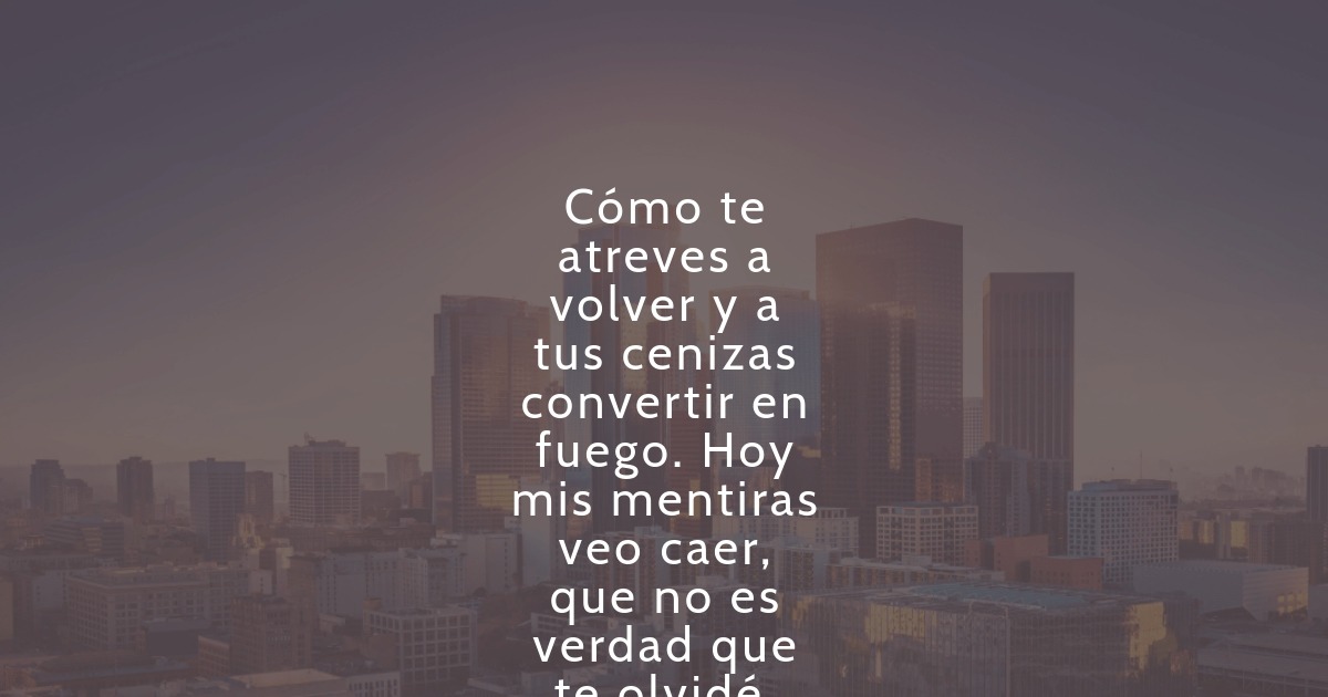Para levantar tu falda cada día de por medio. Cómo te atreves a volver. A darle vida a lo que estaba muerto. La soledad me había tratado bien. Y no eres quien para exigir derechos. Cómo te atreves a volver. Y a tus cenizas convertir en fuego. Hoy mis mentiras veo caer. Que no es verdad que te olvidé.