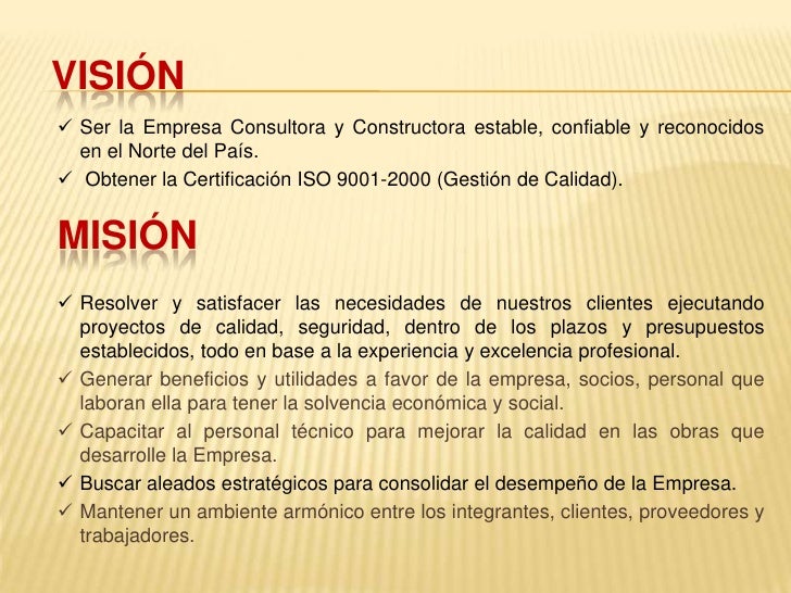 Ejemplos De Mision Vision Y Objetivos De Una Empresa Constructora