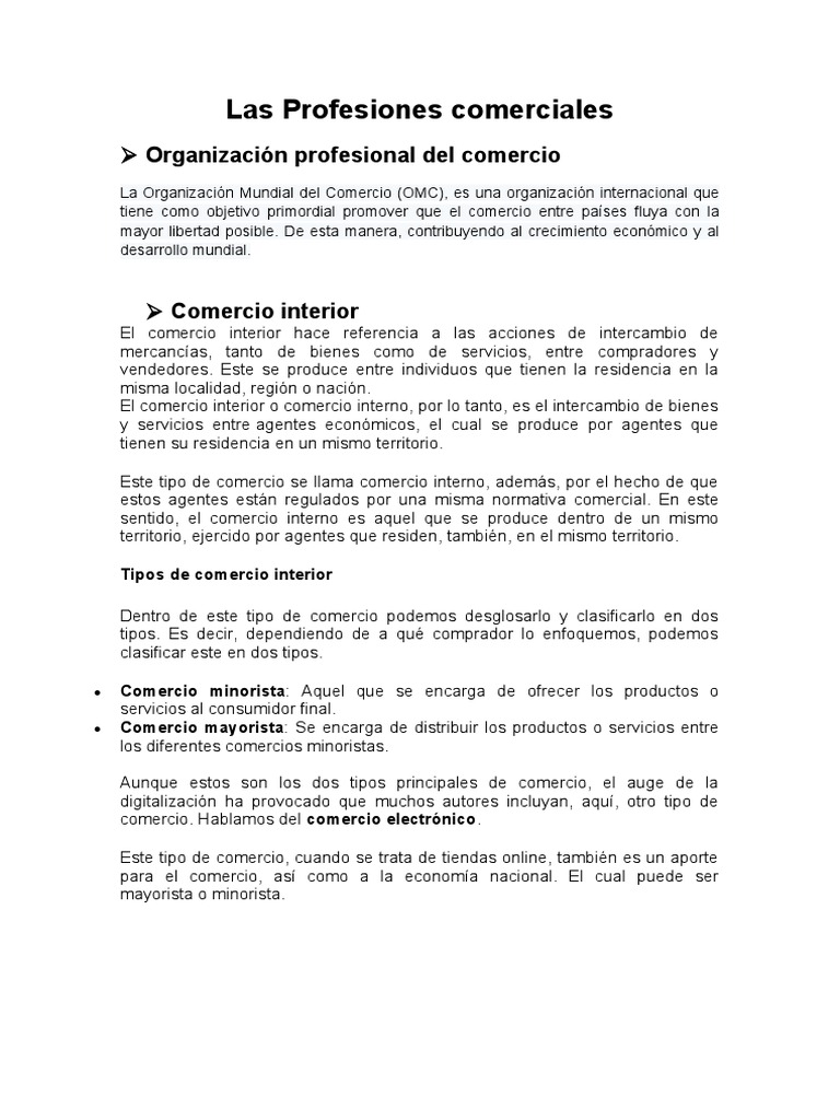 Las Profesiones Comerciales PDF Comercio El comercio internacional