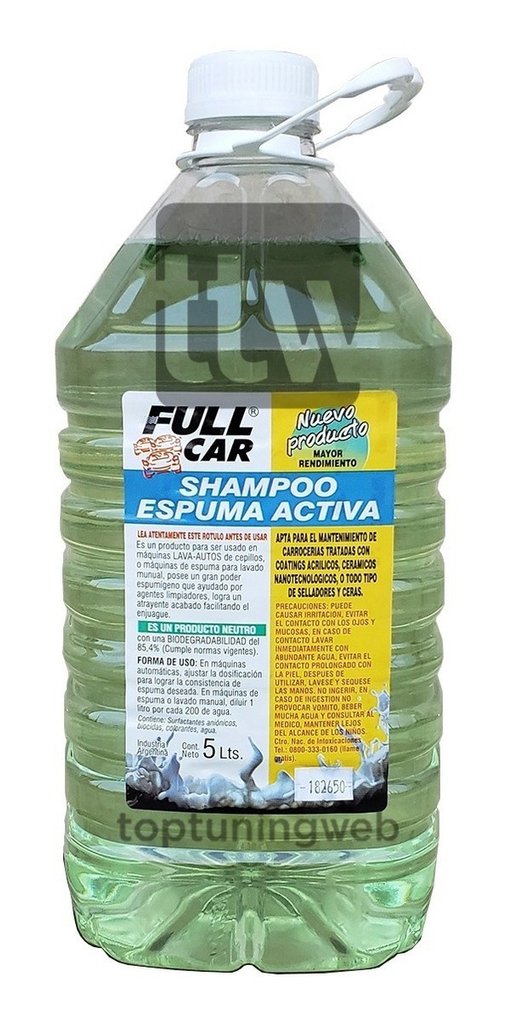 Lava Autos Shampoo Espuma Activa X 5 L FULL CAR Productos para limpieza y cuidado del auto.