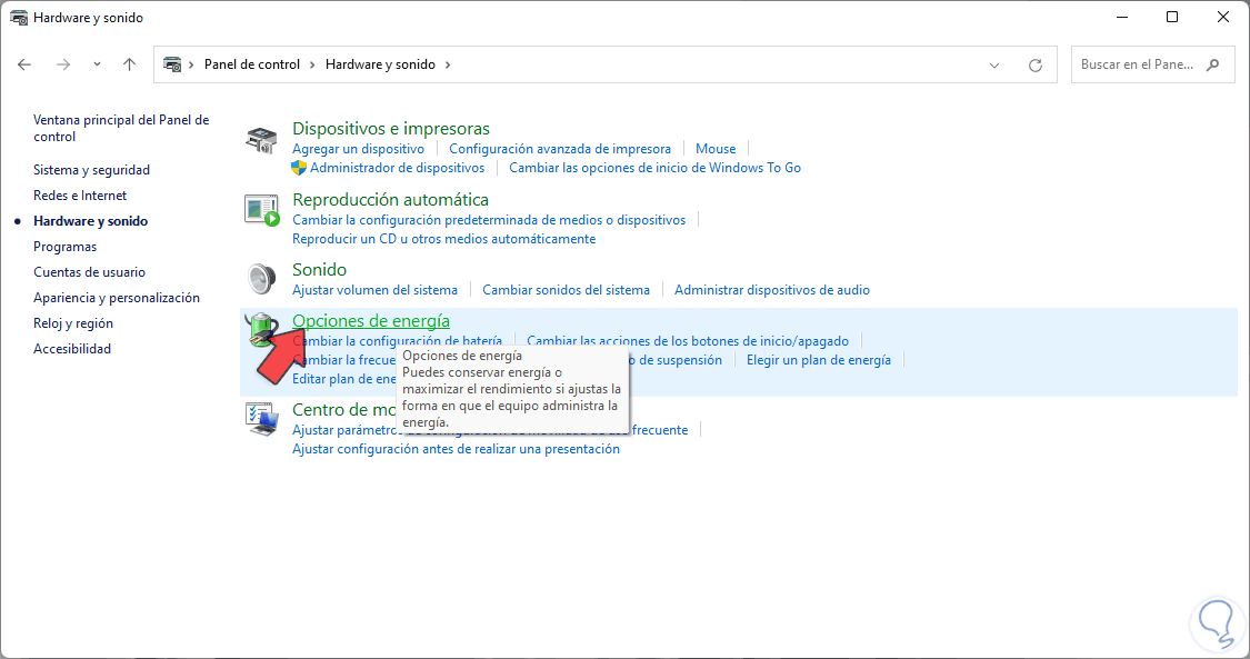 Cómo usar laptop con tapa cerrada en monitor externo. Paso 1. Para lograr esto abrimos el Panel de control: Paso 2. Veremos lo siguiente. Damos clic en "Hardware y sonido" para ver esto: AMPLIAR. Paso 3. Damos clic en "Opciones de energía" y se abrirá la siguiente ventana: